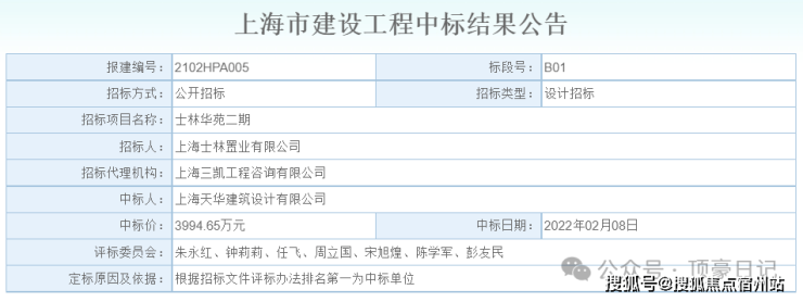 2022年2月8日,上海天华建筑设计有限公司以3994.65万元中标士林华苑二期地块设计项目!