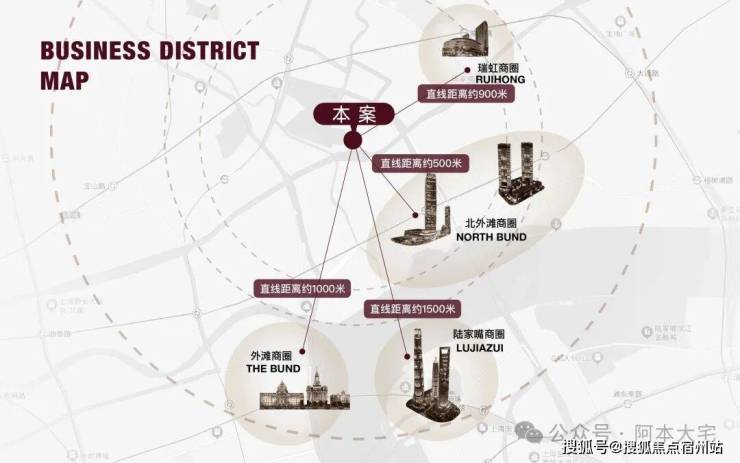 商业配套方面: 项目约2公里内,多元繁华构筑封面商业圈:北外滩商圈直线距离约500米,外滩商圈直线距离约1000米,陆家嘴商圈直线距离约1500米,瑞虹商圈直线距离约900米。