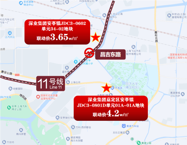 2022年6月2日,深业集团所属深业华东公司成功竞得上海嘉定区安亭镇JDC3-0602单元34-02地块,地块出让面积43128.5㎡,容积率2,成交楼板价19009元/㎡,溢价率8.63%,房地联动价36500元/㎡。