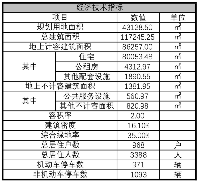 规划共设968户,商品房890户,保障房72户;机动车停车位979个。
