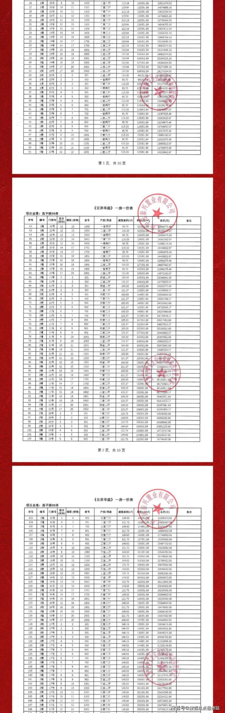 项目一房一价表▼