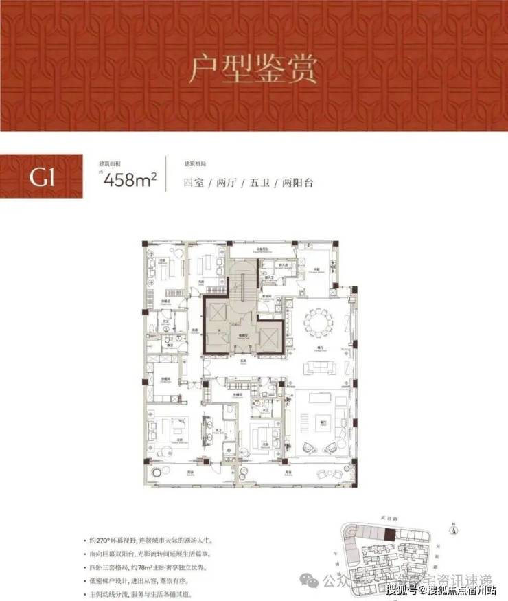 458㎡户型同样为四房布局,主卧套房面积较大,并配备独立衣帽间及卫浴空间
