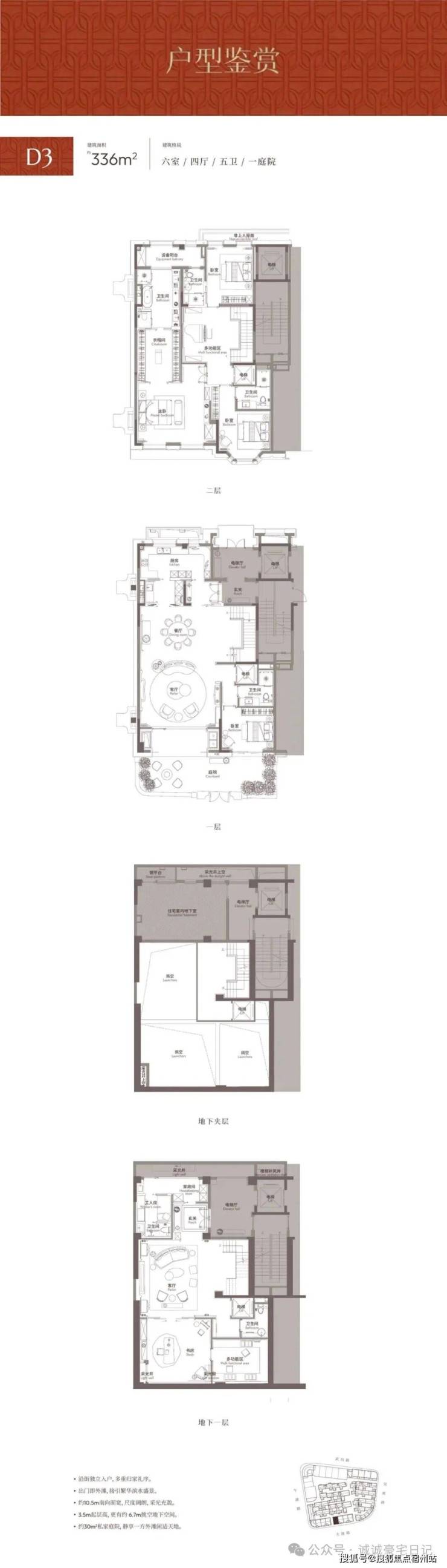 下叠户型设置私家庭院,南向面宽约10.5米,客餐厅与庭院形成连续空间