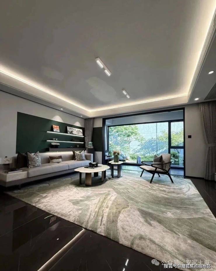 四开间朝南,南向超宽尺度,让空间底色被窗外景色点缀。