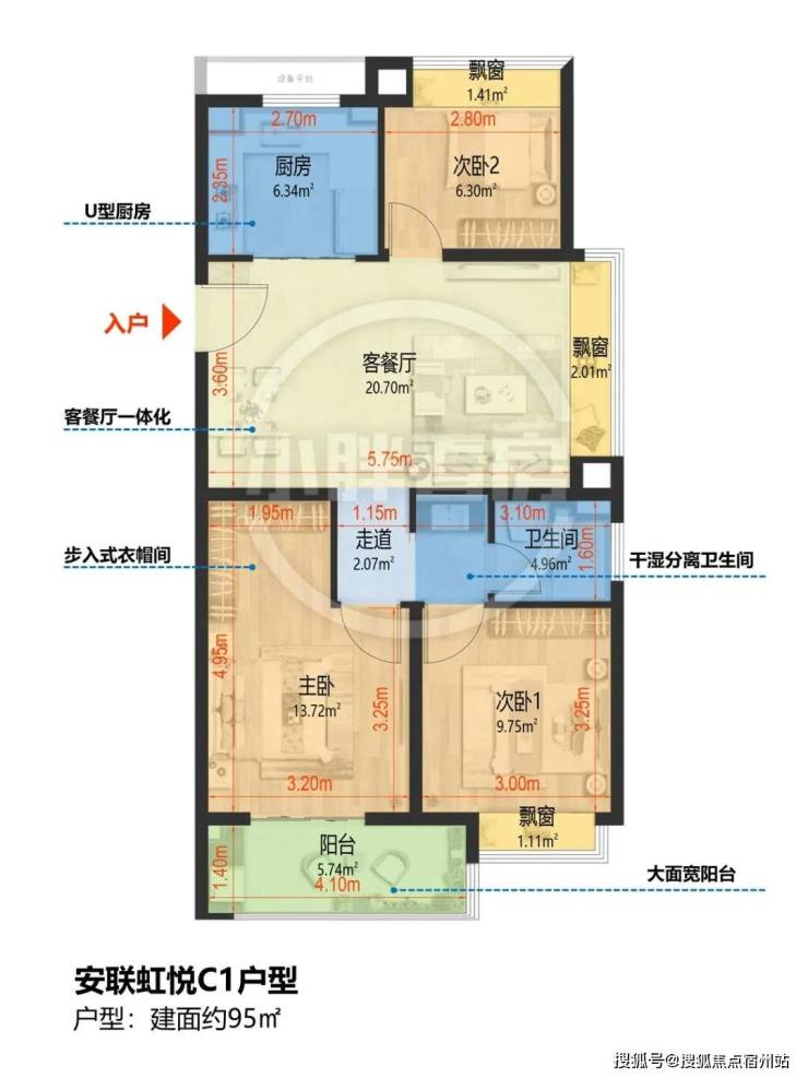 3.2 建面约99㎡三房两厅两卫:飞机户型,舒适升级