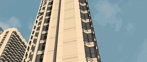 塔楼立面分为上、中、下三段,设计了充分的空中绿化, 充满未来主义的立面中透出Artdeco风格,与上海这座远东都市形象相契合。南边的塔楼顶部甚至设计了一座直升机停机坪, 而这也是上海唯一的住宅停机坪。