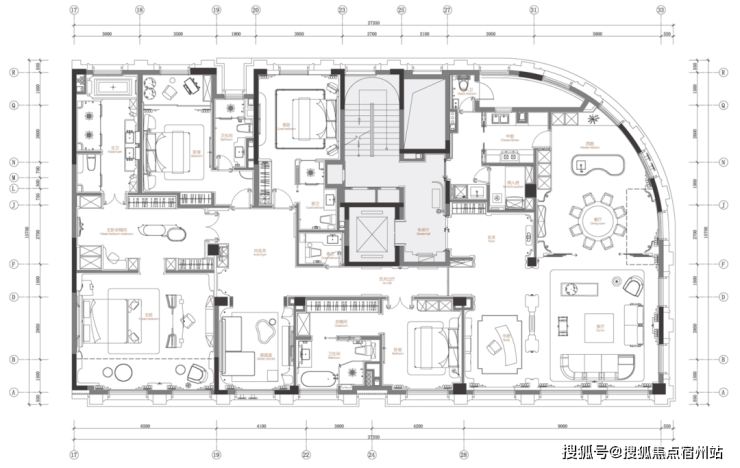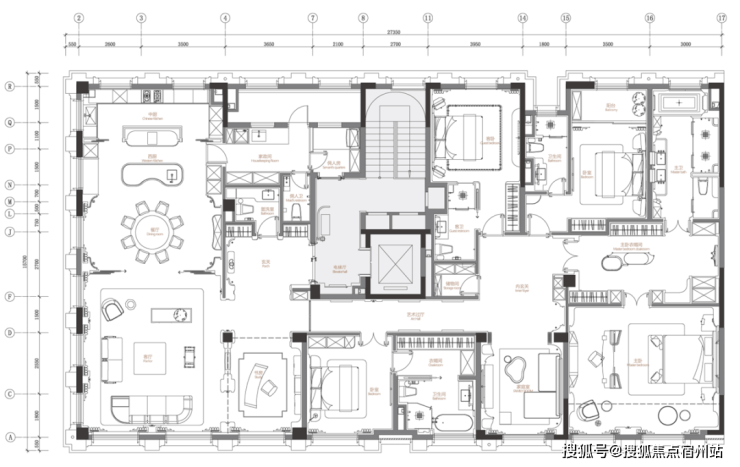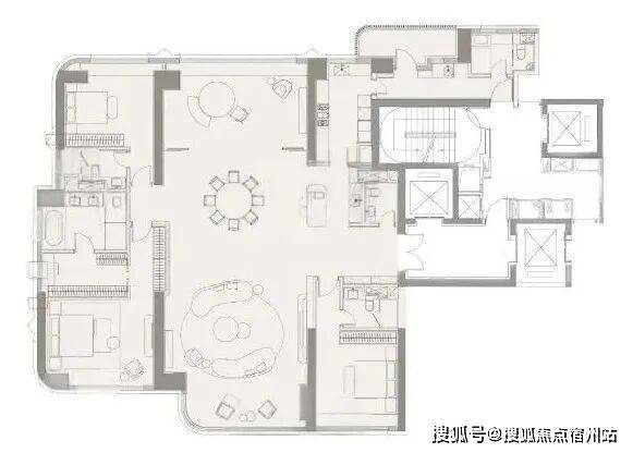 整个户型 十字中轴的布局, 方正无比的格局, 卧室全套房的设计, 27米的南向面宽…… 无论是功能性还是尺度感都足以承载一个 大家族的居住和传世需求!