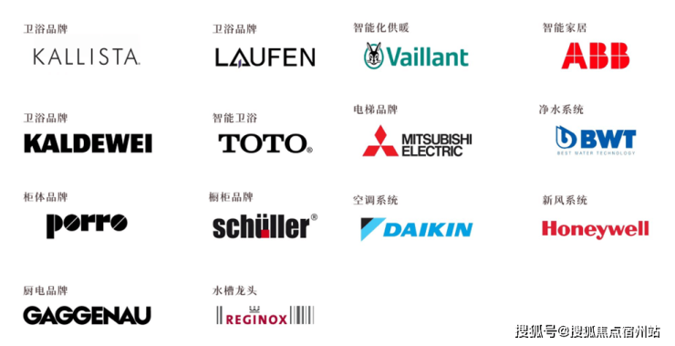 Daikin空调、 Honeywell新风系统、 Vaillant供暖、 BWT中央净水系统、ABB华为智能家居系统、三菱电梯系统等设备。