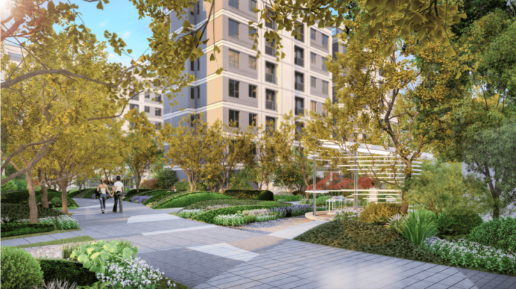 立足南北双片区 近50000 ㎡大盘景观空间,森兰·航荟名庭规划了以 300m大中轴,10000 ㎡ 中心景观区为核心的多组团丰富空间。