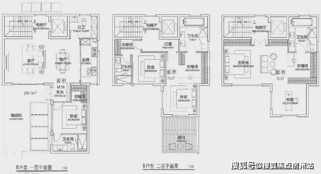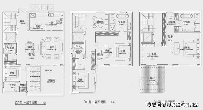 所有户型均采用“地上三层+地下一层”经典格局,得房率超90%,每户配备私家庭院、星空露台与独立电梯,最大庭院面积可达80㎡,地下空间可灵活改造为酒窖、影音室、健身区,满足家族居住与高端社交双重需求。户型设计上实现南北通透,南向面宽最大可达12米,充足采光与通风让每一寸空间都兼具舒适度与仪式感,细节之处尽显央企精工品质。