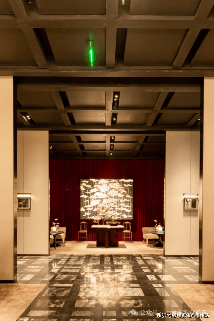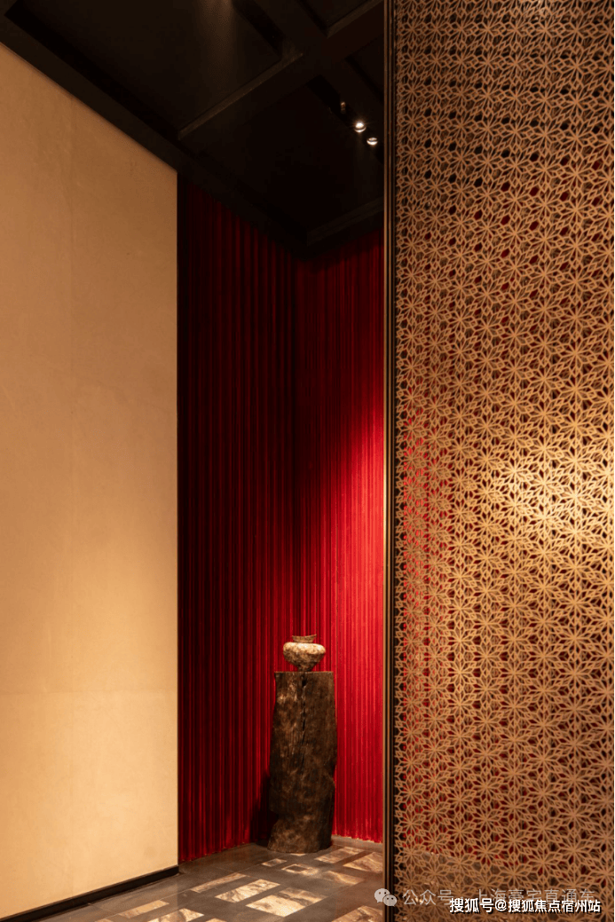 材料 选用 意大利石材,BVLGARI HOTEL大理石,铝型材塑型红, 四层金属网格 墙面以及 梧桐叶金属屏风 等, 打造独属老静安的记忆符号,高奢定制,市区豪宅调性拿捏!