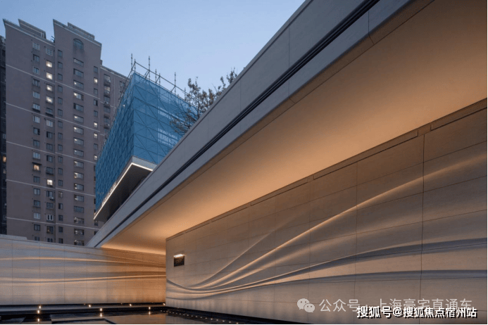 示范区大量运用数十种原石打造,例如社区入口处 揉石成缎 的 葡萄牙沙漠风哑光面石墙, 采用了十几道复杂工序,水刀雕刻、高精抛光仅是前奏,喷砂、浮雕与镶嵌等高难技艺亦是中段,最终展现完美的光泽与细腻触感,形状上还原风的褶皱, 展现独家的质感和归家仪式感。