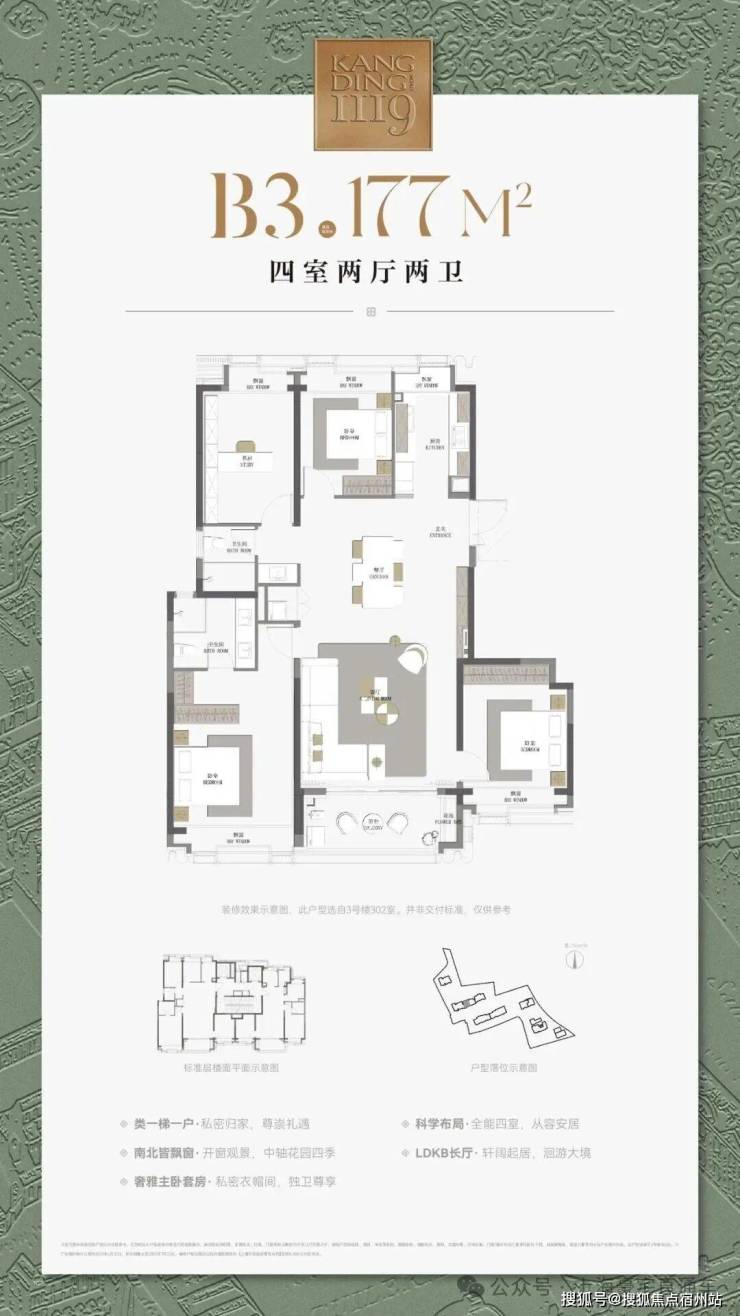 建面约177㎡四房户型,6重采光面,室室皆阳,是对于预算更高的客户,招商给出的又一全新选择。
