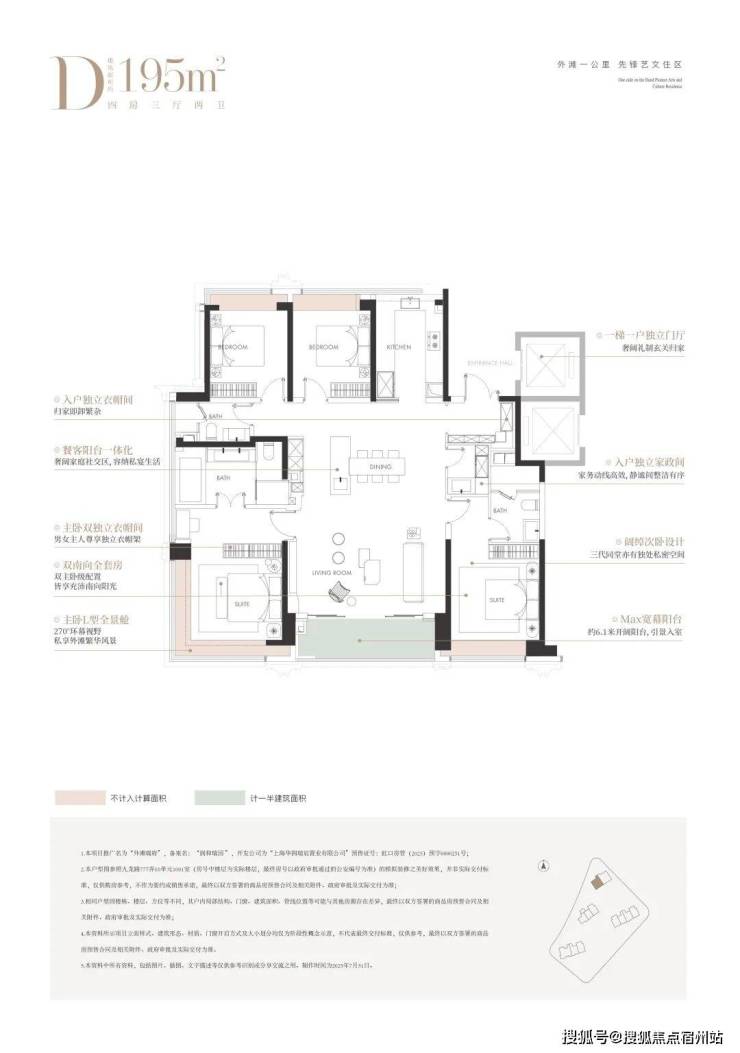 建面约195㎡4房: