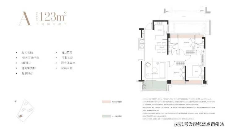 建面约124㎡3房: