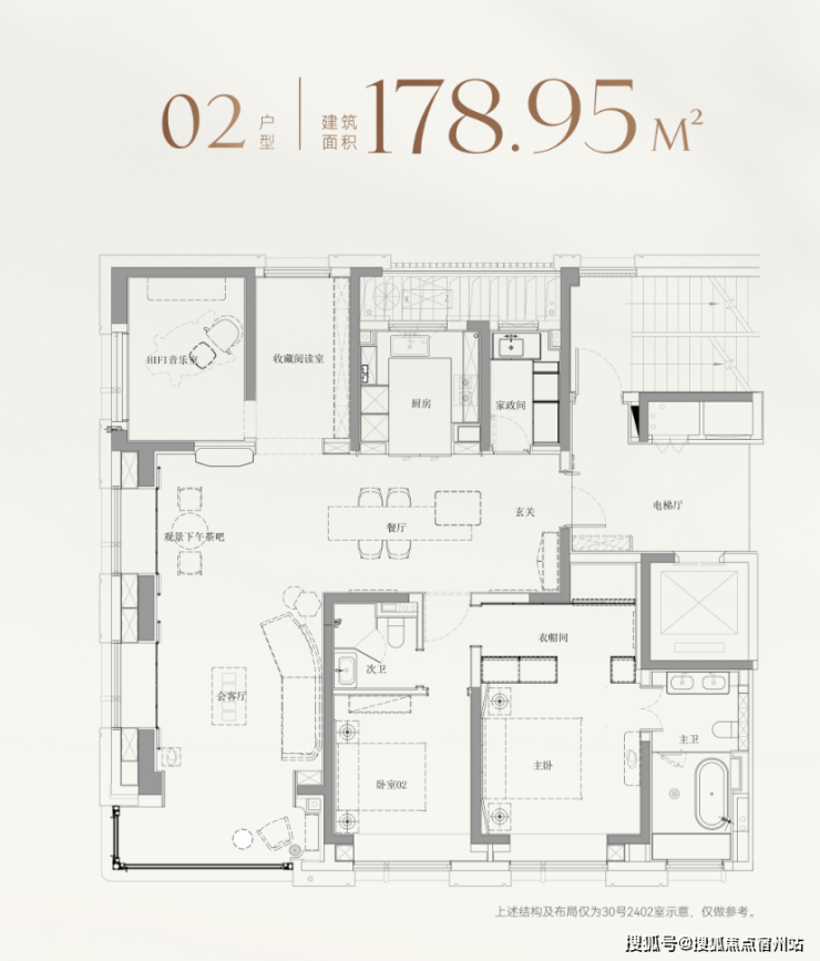 以建面约179㎡的边套为例,并未将北房间局限为常规卧室,而是灵活打造为HIFI音乐室与收藏阅读室,既可作为业主的灵感工作室,也能成为孩子的兴趣天地;