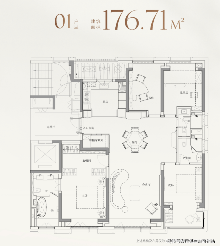 而建面约177㎡01室,则针对性地打造为4房格局,精准契合二胎家庭或三代同堂需求。