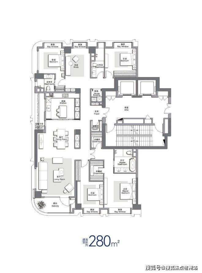 280㎡4+X房:内环内·大师定制艺术·全功能性奢宅;边套270度舒适采光,超大舒适厨房,五房空间尺度、可根据自身需求调整功能;3700-4000万,尊崇功能五房,满足现有市场多孩客户需求,可随时更改室内功能性;客阳台一体,边套270°舒适采光;