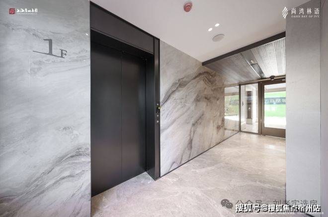 电梯厅墙面大面积铺设岩板,质感拉满。