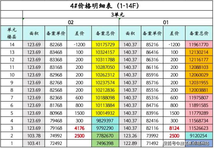 实际上3号02室与13号01室同楼层价格相差很少,而13号02室会略高一些。