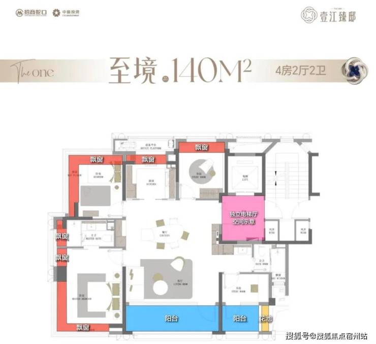 整体布局与140㎡户型基本一致,双南向阳台、独享电梯厅、6飘窗等户型拓展面积超过18㎡!