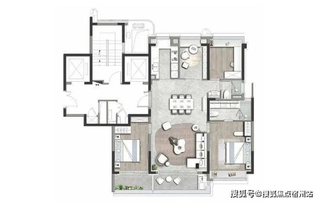 主卧套房设计,带双台盆卫生间;三个次卧可以后期利用阳台或飘窗,延展使用。据第三方测算,阳台与飘窗的赠送面积合计达到约20㎡,面积实得率高达近90%!