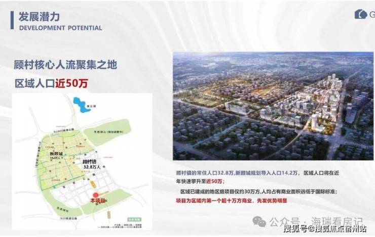 双地铁7号15号线地铁上盖,双地铁口,每天运载客流出站5万人次,东面宝山唯一三级甲等华山医院北院年接诊人数50万人,就诊服务周边直径10公里范围内,南面亚洲第一大435万方郊野公园顾村公园,约等于560个足球场大,新建顾村公园三期即将开放,逛完一圈需要8个小时左右,每年吸引的全国各地游客达到了200万人,周末游客人次1万左右。西面是保利叶语高档住宅和别墅社区,周边住宅单价5-6万左右,东面大型成熟的居住社区,南面1公里上海宝山大学城,项目自带5栋主楼、3栋酒店式公寓2栋写字楼,本案4公里辐射范围常住消费人口25万人以上,随着城市板块消费的不断融合,产业产能的不断升级,将为本案带来源源不断的消费人群。