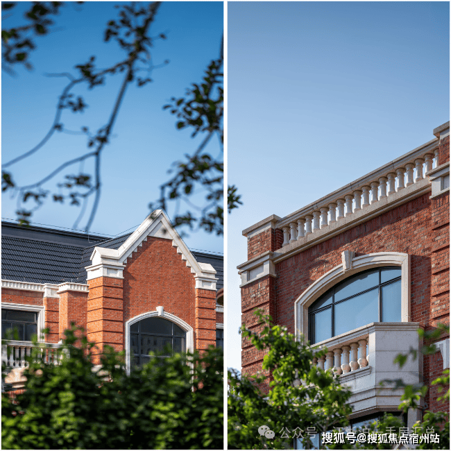 联排别墅采用英式维多利亚建筑风格,红砖与德国米黄干挂石材的搭配,形成温暖且经典的色调;经典长窗/方框窗/八角窗/拱形造型/坡屋面,赋予建筑精巧自然的美学质感。