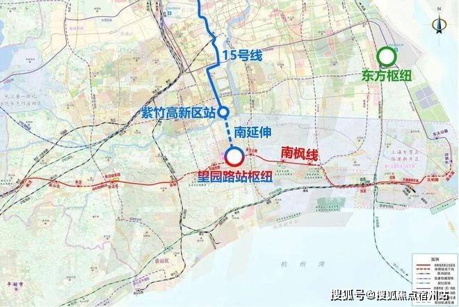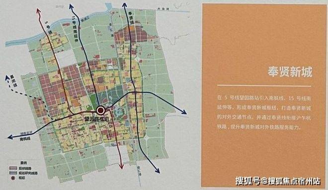 根据规划显示,在5号线望园路站引入南枫线、15号线南延伸等,形成奉贤新城枢纽,打造奉贤新城的对外交通节点。