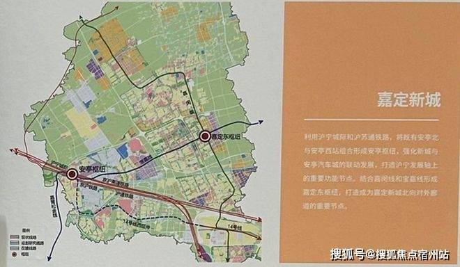 嘉定新城利用沪宁城际和沪苏通铁路,将既有安亭北与安亭西站组合成安亭枢纽,强化新城与安亭汽车城的联动发展,打造沪宁发展轴上的重要功能节点。