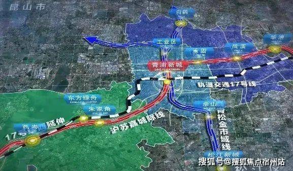 根据网上透露出来的“五大新城枢纽站布局图”,青浦新城站枢纽将结合沪苏嘉城际(示范区线)、嘉青松金线(规划中),在17号线青浦新城站形成三线换乘。