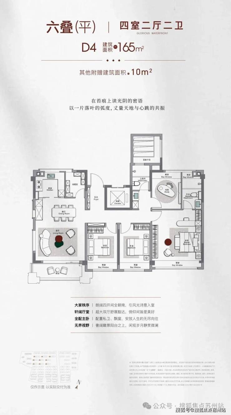 同时,南北两个房间以及主卫均为270°转角飘窗(1-2层除外),主卧套间约21㎡,3.9米的超大面宽,功能齐全——独立4件套卫浴、化妆台、步入衣帽间,尊崇感与舒适度拉满。