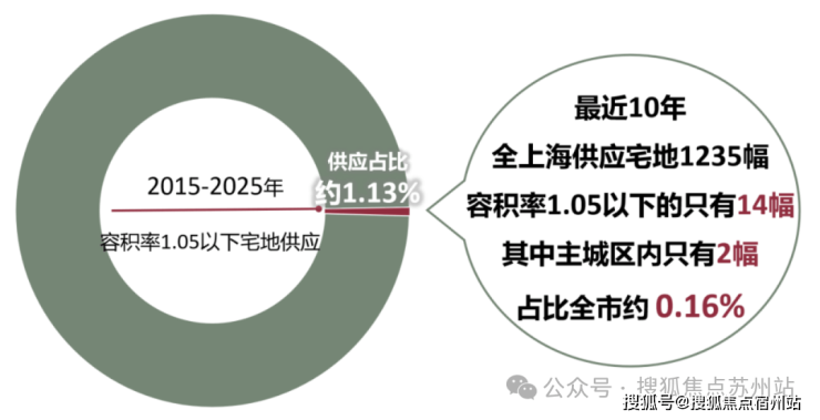 据克而瑞数据统计,2015年-2025年这十年,全上海累计供应1235幅宅地,其中容积率≤1.05的一共只有14块,占比仅约1.13%。更重要的是,这些低密地块绝大多数都地处郊区,主城区的凤毛麟角,仅有2幅!