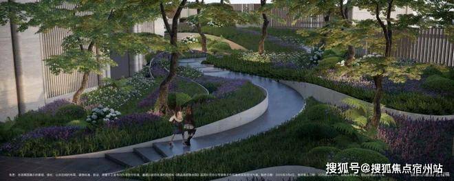 通过设计,将小区景观打造成了立体台地花园,设置缓坡、下沉式花园、台阶等,让整体景观表现出立体层次感,错落有致。