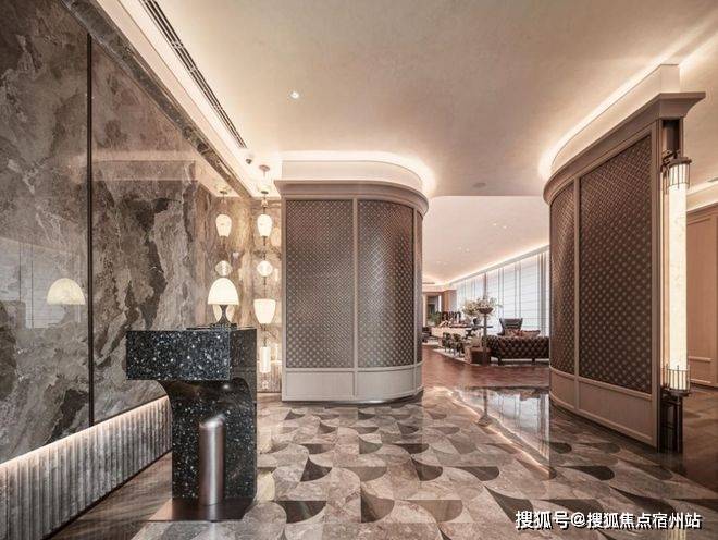 在主材上,项目采用了沙漠风与白海棠石材,本就质感出众的进口石材,招商还运用了非常复杂的工艺进行雕琢:
