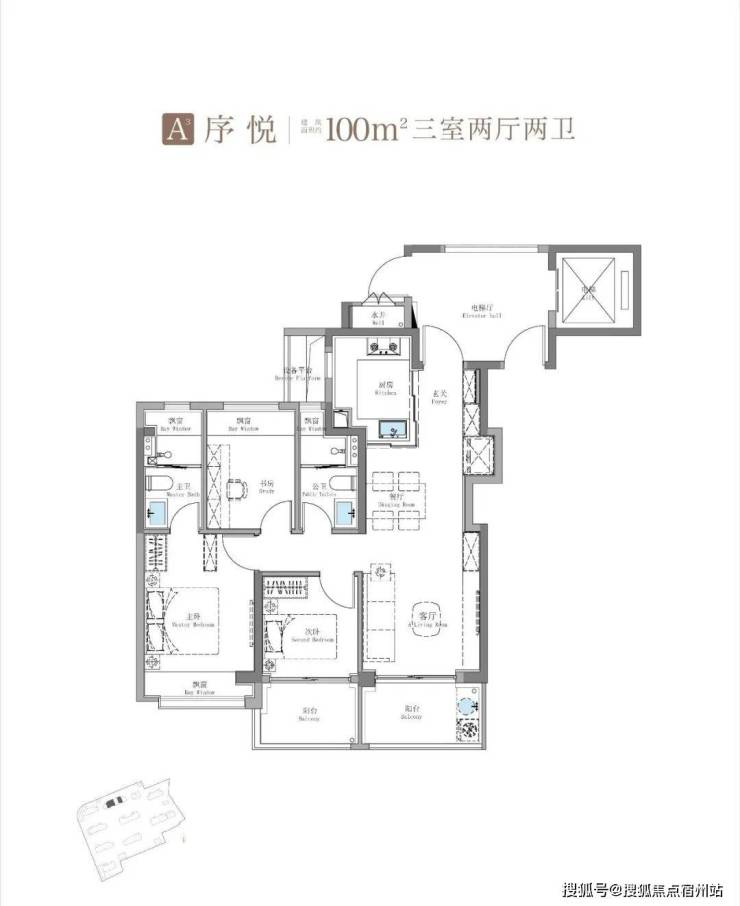 建面约115㎡3房2卫只有二期才会有