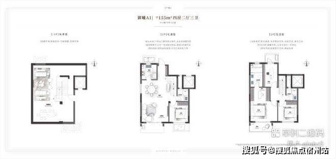 上叠:实现2+1房2卫设计,长辈房位于三层、配卫生间,规避上下楼梯的麻烦。南向阳台与餐客厅一线贯通,享受充沛阳光。四层豪华主卧、北侧连接露台,空中露台及顶层阳光平台,可量身定制成一方幸福天地。