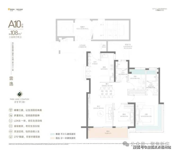108㎡的入门级三房,起步门槛相比润府提高不少。