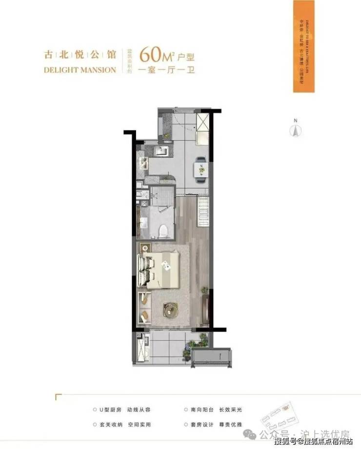 建面约60㎡户型▼