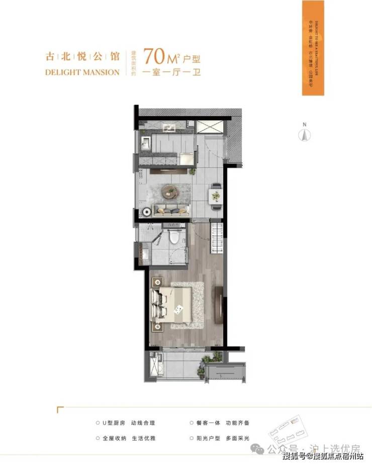 建面约70㎡户型▼
