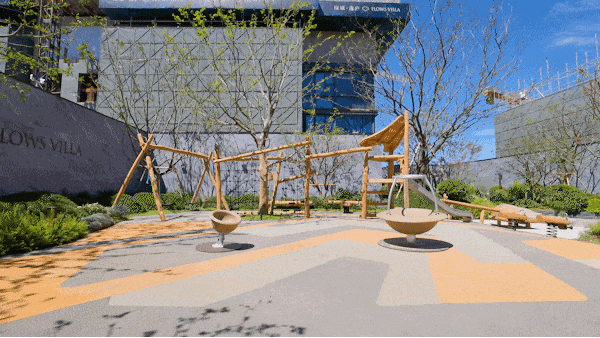 在名为“丛林奇遇记”的儿童游乐区选用的是丹麦顶奢品牌KOMPAN(康攀)的设施,滑梯、攀爬网、秋千、旋转木马、旋转碗、摇摇乐、跷跷板......一应俱全。