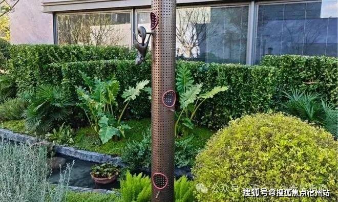 小溪边隐藏着绿城景观的超级IP——春知园,品种繁多的植物密布其中,还有喂鸟支架,供孩子们观察自然。