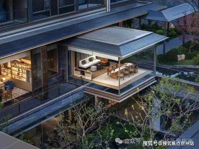 在三面悬空,像是悬浮在水景之上的悬亭茶室,是观看下沉庭院景观的最佳位置。无论是喝茶、聊天还是聚会,都是绝好的场所,业主面子直接满级。