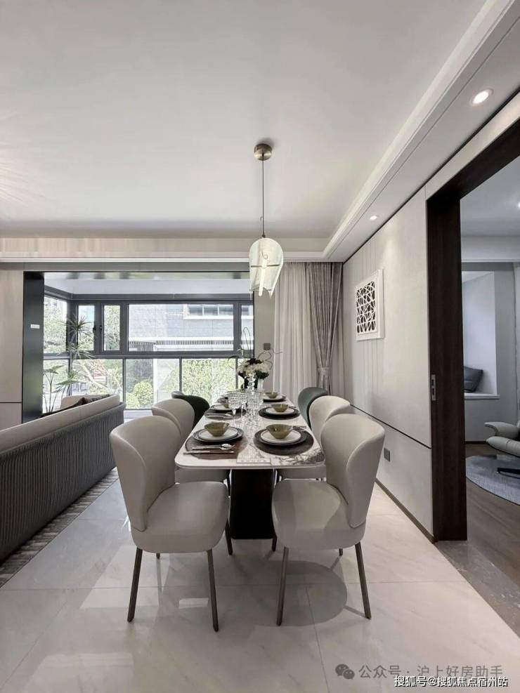 外立面以高级米白色真石漆,以及简约灰色系涂料为主,并于细节间点缀流光金属线条,视觉感官更显东方的典雅韵致。