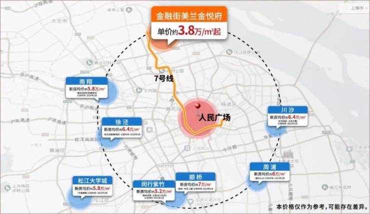 从7号线来说,往后一站的美兰湖,比金悦府贵了约8000元/㎡+,往前几站的潘广路、刘行和顾村公园,都比金悦府贵了1w/㎡上下!