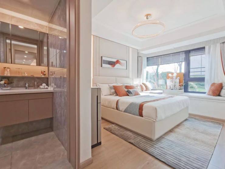 豪宅套房标准主卧设计!这个户型的主卧设计真的无可挑剔,步入式衣柜配上大面积卫生间,舒适度不亚于豪宅套房。