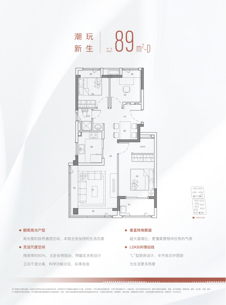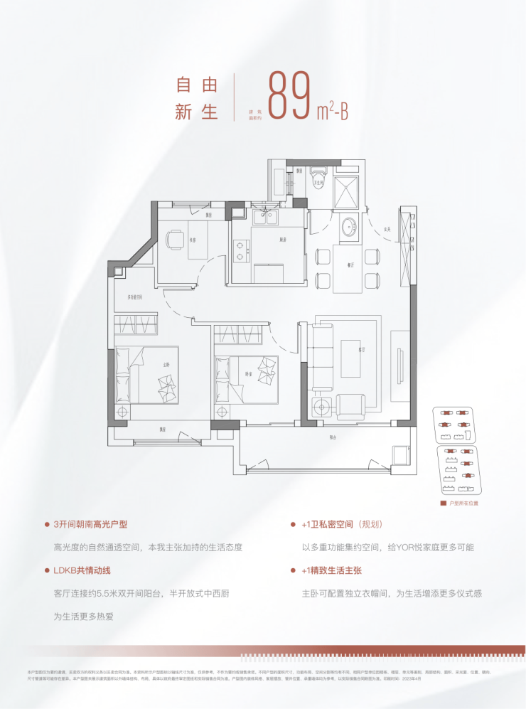 金融街美兰金悦府这次的三房分别做了建面约89m²和102m²的两种户型,各有特色。