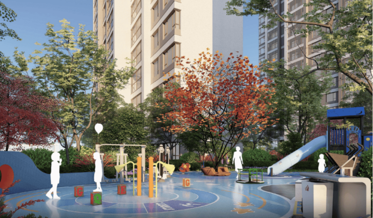 项目的社区景观风格打造上注重人与景观的互动,让艺术美学和生活场景交织,从而营造出有温度、有情感的温馨社区氛围。