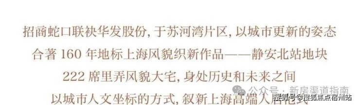 百年招商旗下地产旗舰品牌招商蛇口联袂珠海综合型国有企业集团、“中国企业500强”华发集团旗下华发股份,以上海人文风貌作品新序,还原上海老北站盛景时代的文化生活,在区域标志性的历史氛围中,营造襟怀风云的高端休闲生活方式。