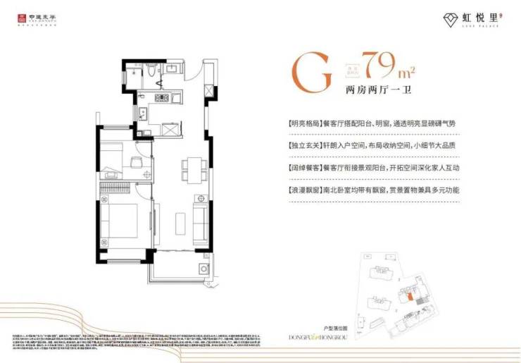 建面约79㎡2房G户型: